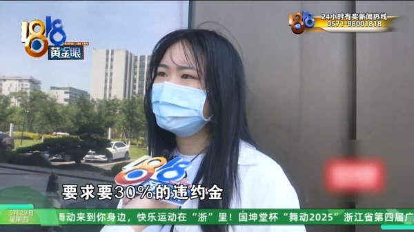 刘密斯:间接就是问了我几个问题,要求要30%的违约金,我才晓得这个工作。